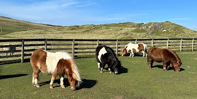 Next, we pay a visit to some of the islands' most famous residents. The wonderful Shetland Ponies originated right here in Shetland, but thanks to their huge appeal can now be found all over the world, being especially popular as riding ponies for children and a companion to horses. Carol, the stud owner, will explain in detail about these beautiful animals. Please remember that they have strong teeth and can nip so please do not feed the ponies!
